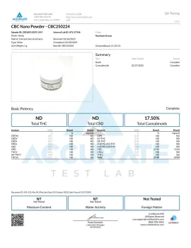 This unflavored, fast-mixing nano Cannabichromene powder packs a total of 1,000mg in a clean, easy-to-use format. Designed for simple, precise use, it blends seamlessly into water, juice, smoothies, or your favorite recipes with no gritty texture and no lingering aftertaste.